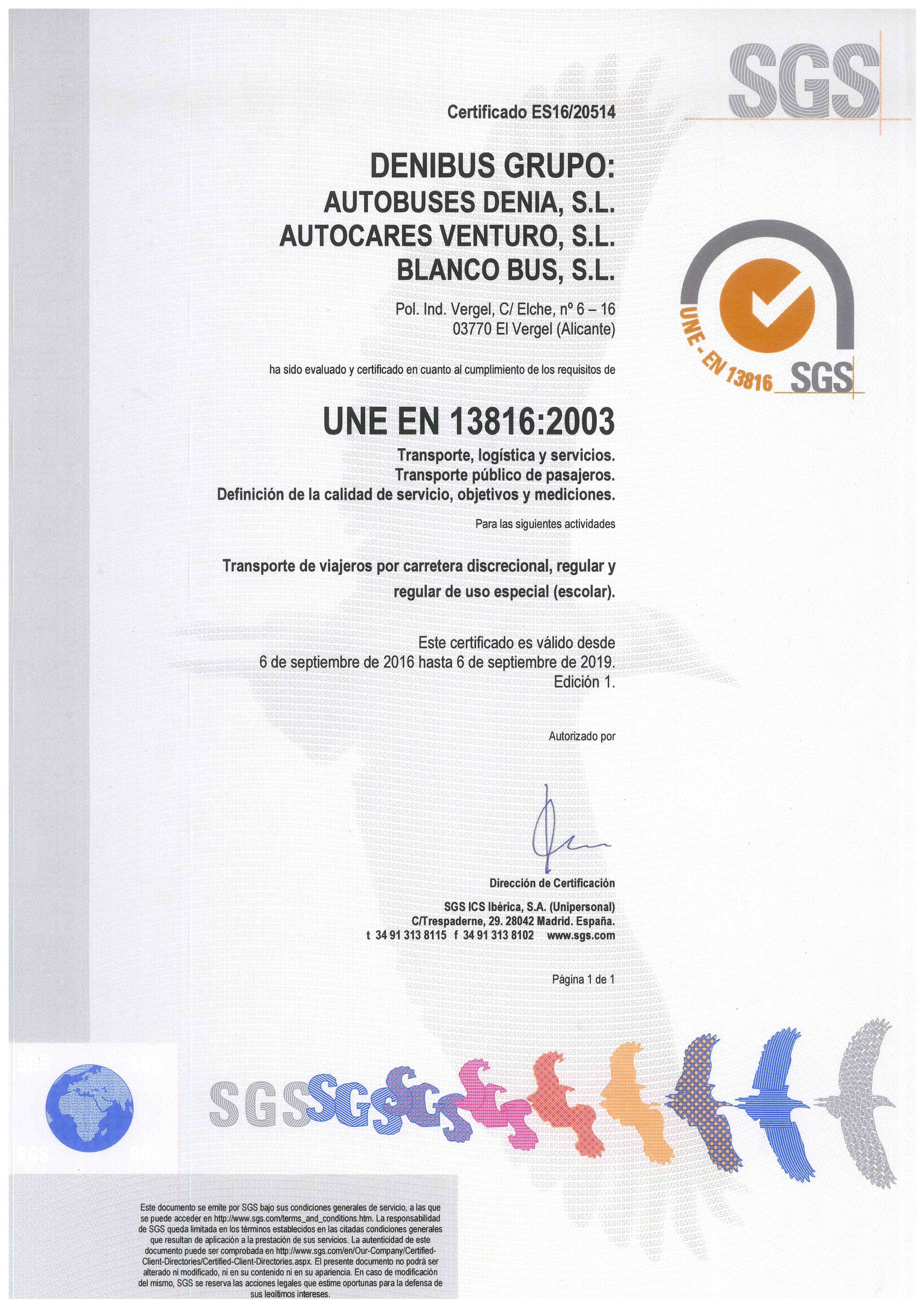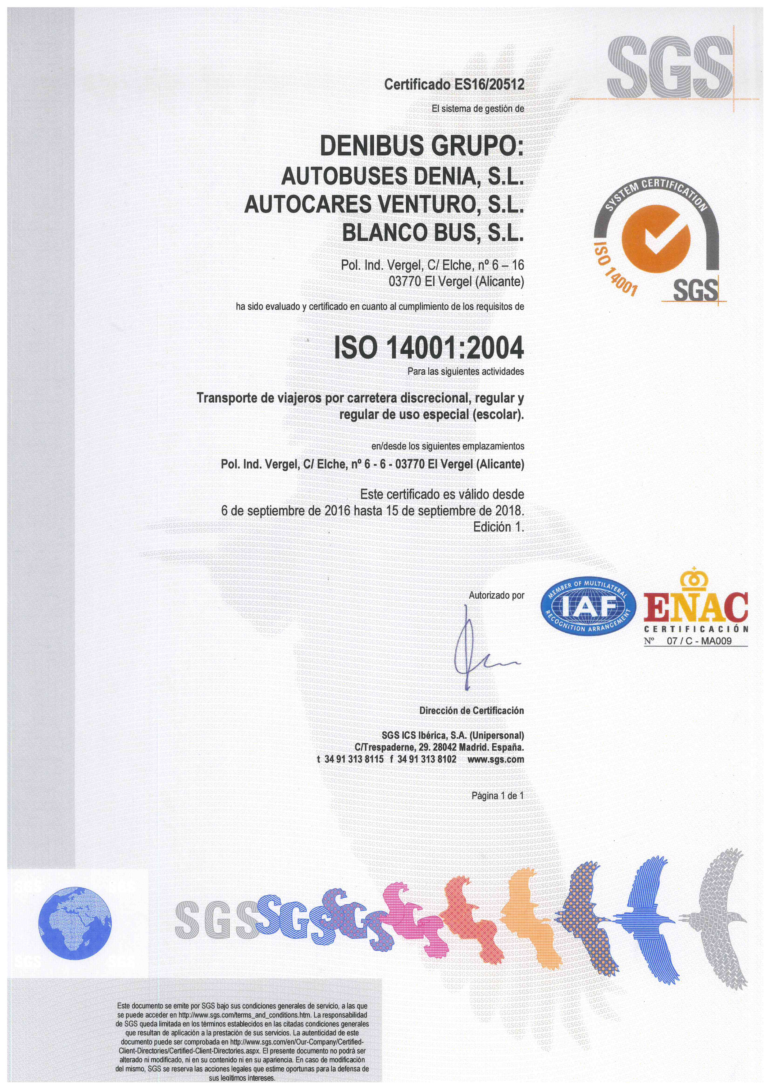 El Grupo Denibus obtiene una vez más los certificados ISO de calidad en el transporte, UNE-EN 13816, certificado de calidad, ISO 9001, y protección medioambietal, ISO 14001.