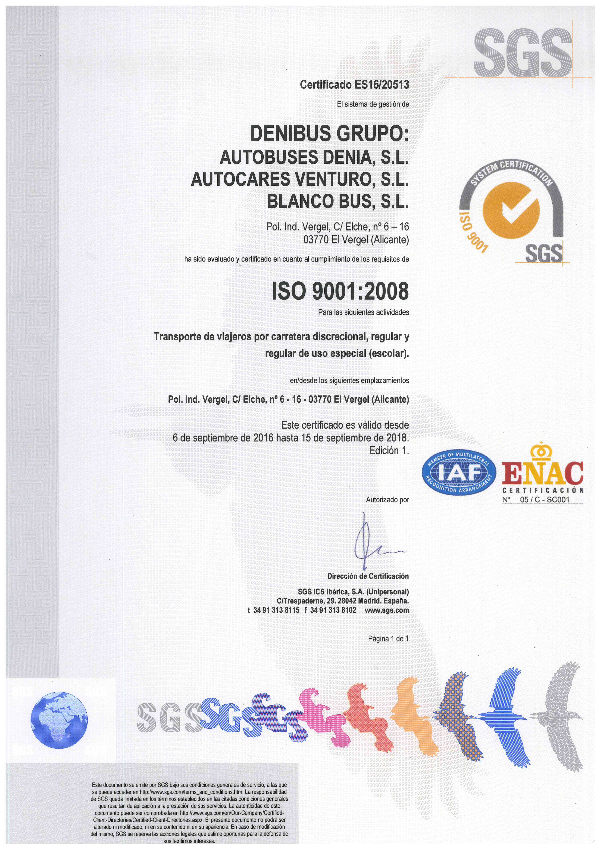 Con estos certificados, Denibus garantiza que sus autocares cumplen con la normativa vigente en materia de calidad y protección del  medioambiental y realizan servicios en condiciones notables de fiabilidad, seguridad y cuidado del medio ambiente.
